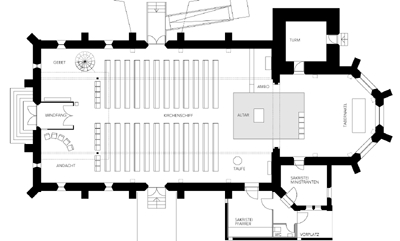 Die Hirschauer Kirche, deren Bausubstanz aus dem 15. und 19. Jahrhundert stammt, benötigte eine technische Sanierung der Gebäudetechnik. Die Kirchengemeinde entschloss sich dazu, in diesem Zusammenhang auch die grundlegende Neugestaltung des Kircheninneren in Angriff zu nehmen, die den Gottesdienstraum an veränderte Gemeindestrukturen und neue liturgische Erfordernisse anpassen sollte. |