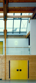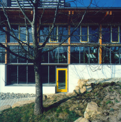 | Verantwortlich: Helmut Krisch Projektleiter: Hans-Peter Stoiber Bauherr: Universitätsstadt Tübingen, Hochbauamt Planungspartner: Büro Schindler Greiner, Tübingen (Statik) Büro Heusel Mezger Partner, Reutlingen (Elektro) Büro Rentschler+Riedesser, Stuttgart (H/L/S) Fertigstellung: 1995 Standort: Weißdornweg, Tübingen-Nordstadt Fotos: Siegfried Gragnato, Stuttgart |