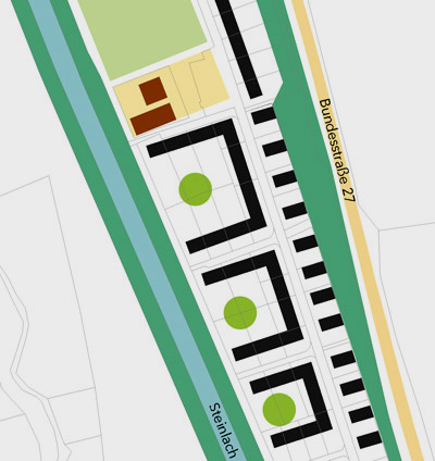 Hintergrund der Aufgabenstellung war das übergeordnete städtebauliche Ziel des sparsamen Umgangs mit den natürlichen Ressourcen. Durch Nachverdichtung in bestehenden Wohngebieten kann die Inanspruchnahme bisher unbebauter Flächen zur Siedlungserweiterung verringert werden.